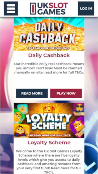 In-terms of looks; UK Slot Games Casino features a British theme with a splash of read and blue completing the effect. Navigation is very intuitive, and the casino plays very well on smartphones and tablets so you can take the casino action anywhere with you.