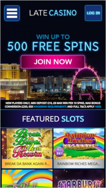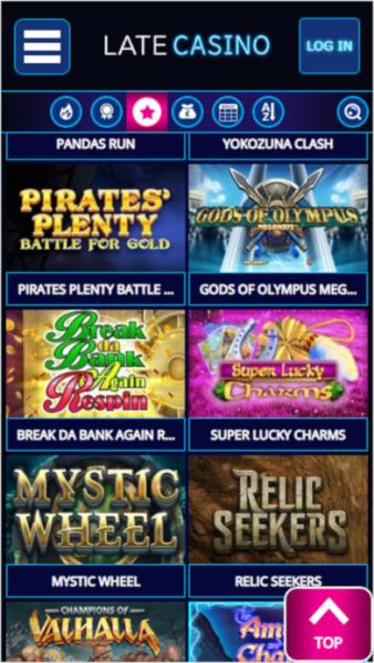 In-terms of looks; Late Casino features a Las Vegas theme with a splash of navy completing the effect. Navigation is very intuitive, and the casino plays very well on smartphones and tablets so you can take the casino action anywhere with you.