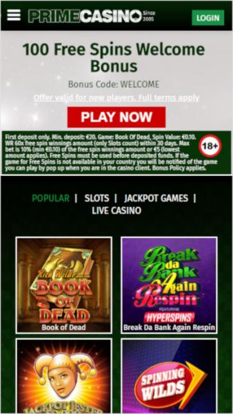 In-terms of looks; Prime Casino features a classic slots theme with a splash of light green completing the effect. Navigation is very intuitive, and the casino plays very well on smartphones and tablets so you can take the casino action anywhere with you.