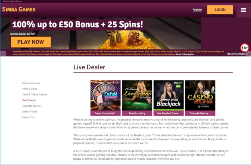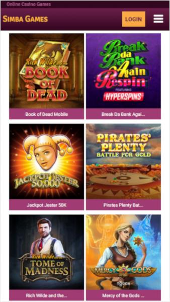Simba Games Casino Website